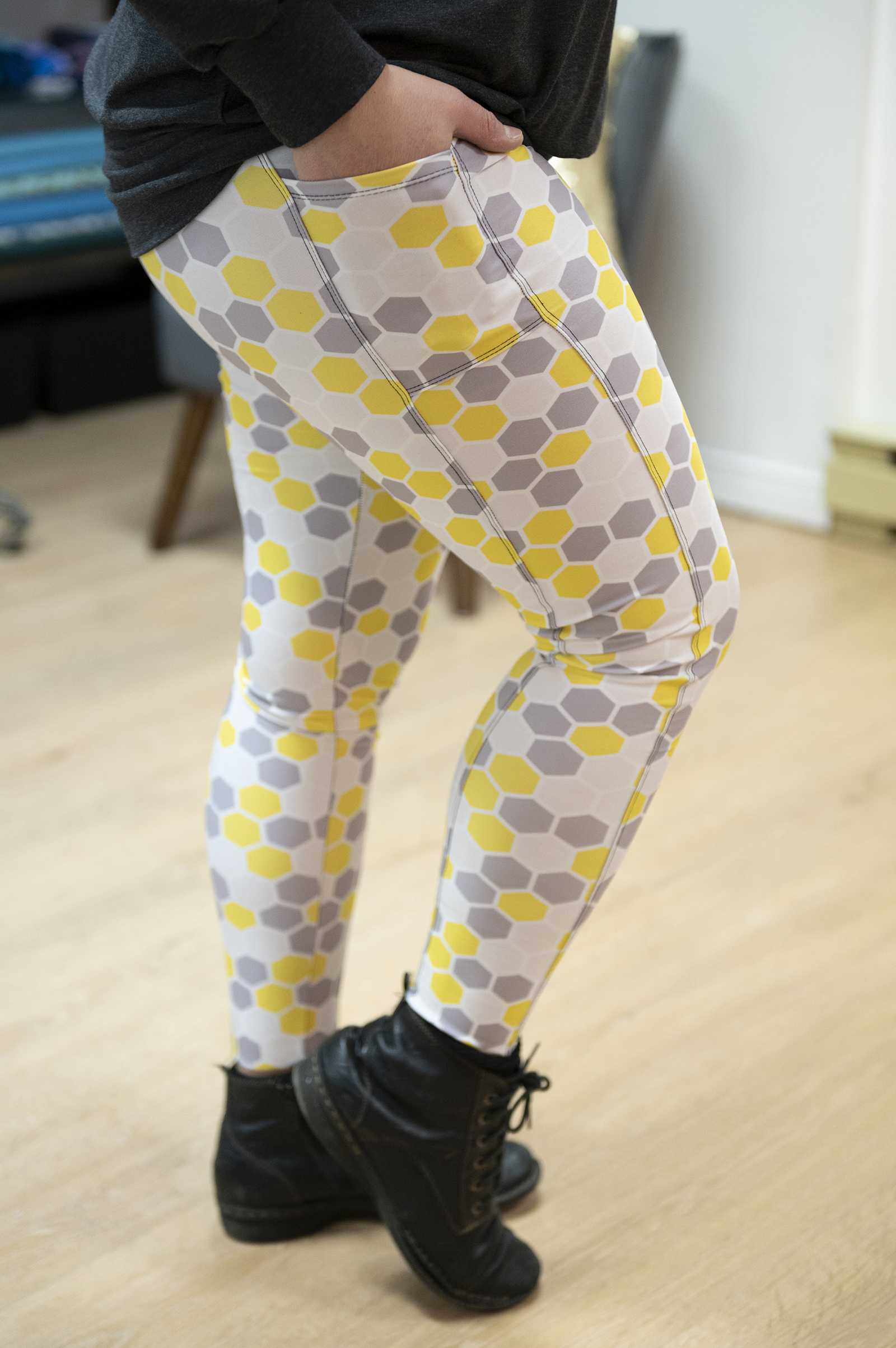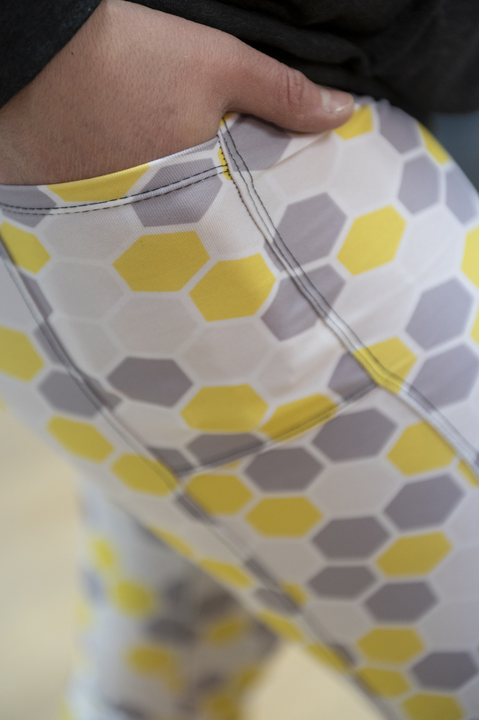Legging confectionné dans le textile Chitosanté à compression moyenne, offrant un maintien équilibré, une extensibilité confortable et une sensation douce au contact de la peau. Réalisé avec le motif Spring Fling – Ruche jaune et gris, il combine performance textile et esthétique graphique.